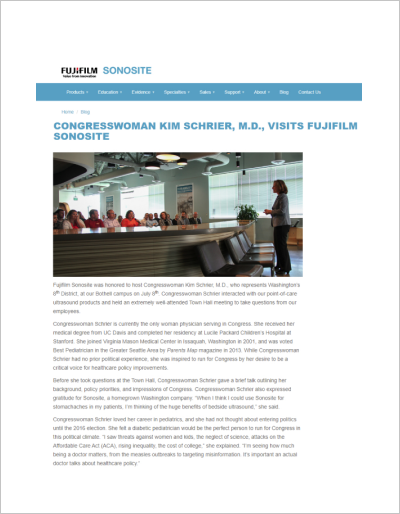 Congresswoman Kim Schrier, M.D., Visits Fujifilm Sonosite
